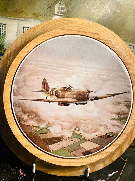 Vintage WWII Spitfire Fighter Plane Collector Plate – Handmade Wooden Frame England