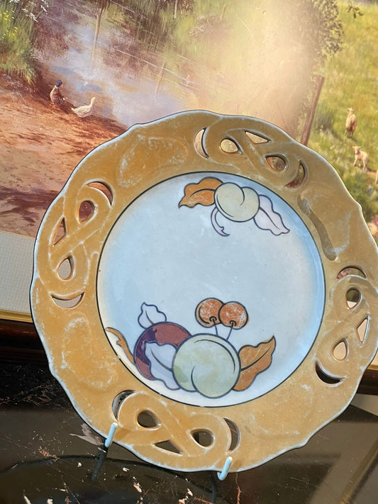 Vintage Fruit Motif Decorative Plate with Cutwork Border – England