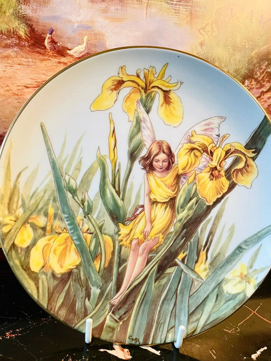 Vintage Fairy Decorative Plate – Yellow Iris Flower Design England