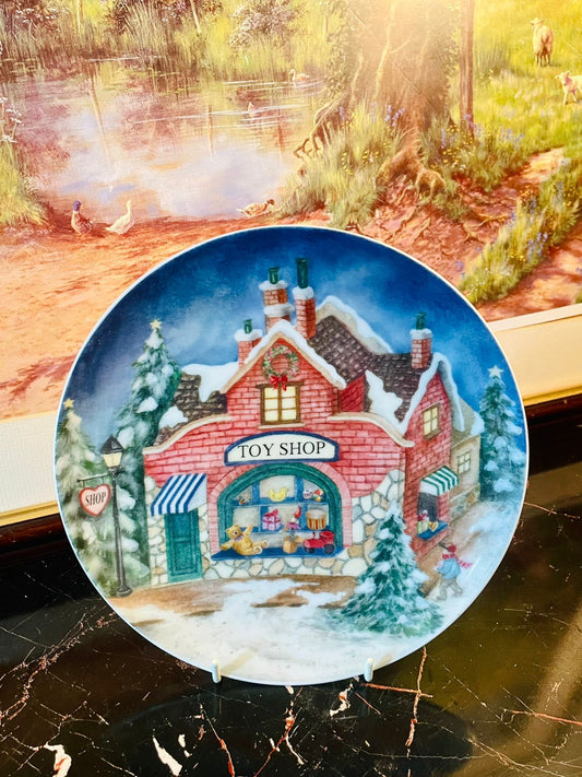 Vintage Christmas Decorative Plates 8 inches – Winter Village Scene Collection