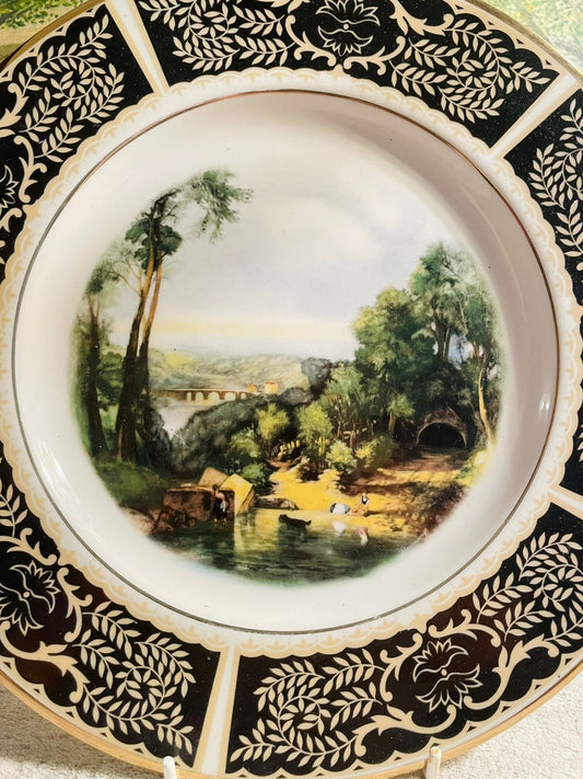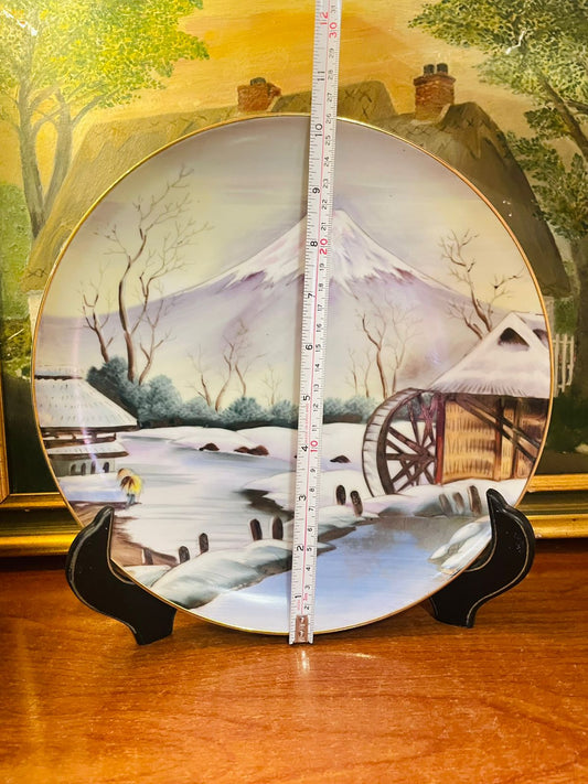 Vintage Hand-Painted Scenic Mountain Plate – Wall Decor