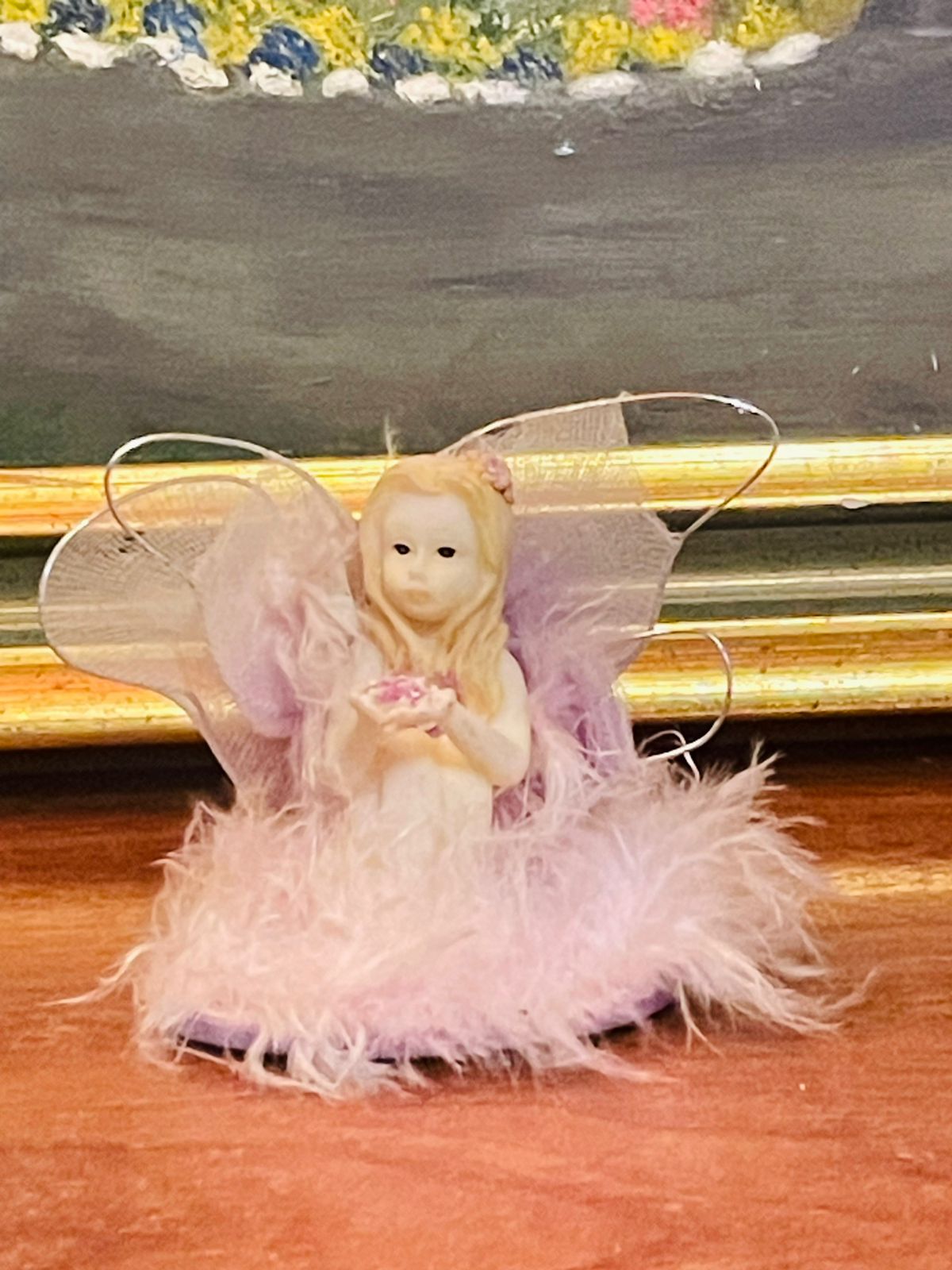 Features delicate wings, flowing gown, and serene expression