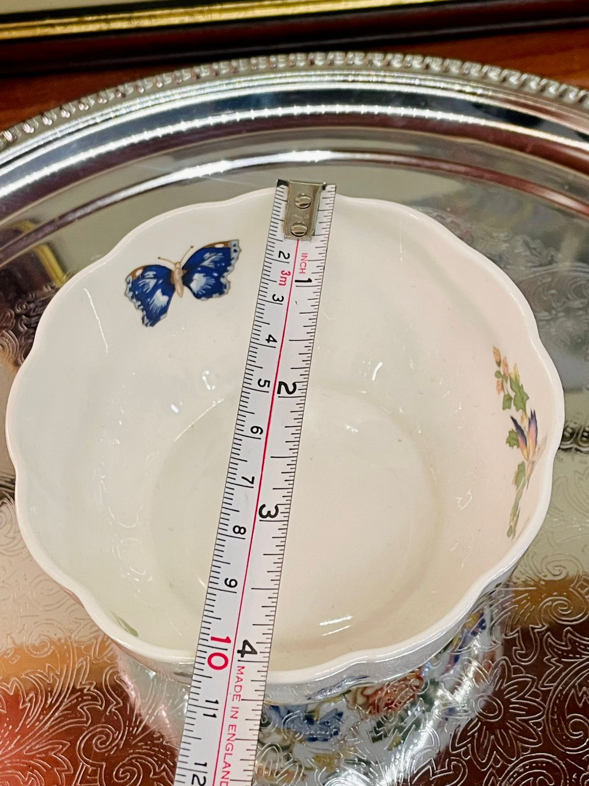 Design: Scalloped rim with colourful butterfly & floral garden pattern