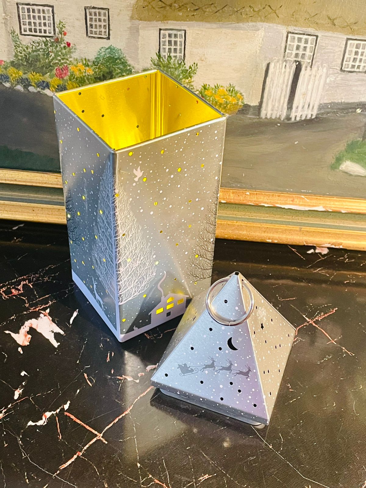 Speciality: Lantern-style shape with Christmas theme – snow, Santa sleigh, moon, reindeer & winter trees