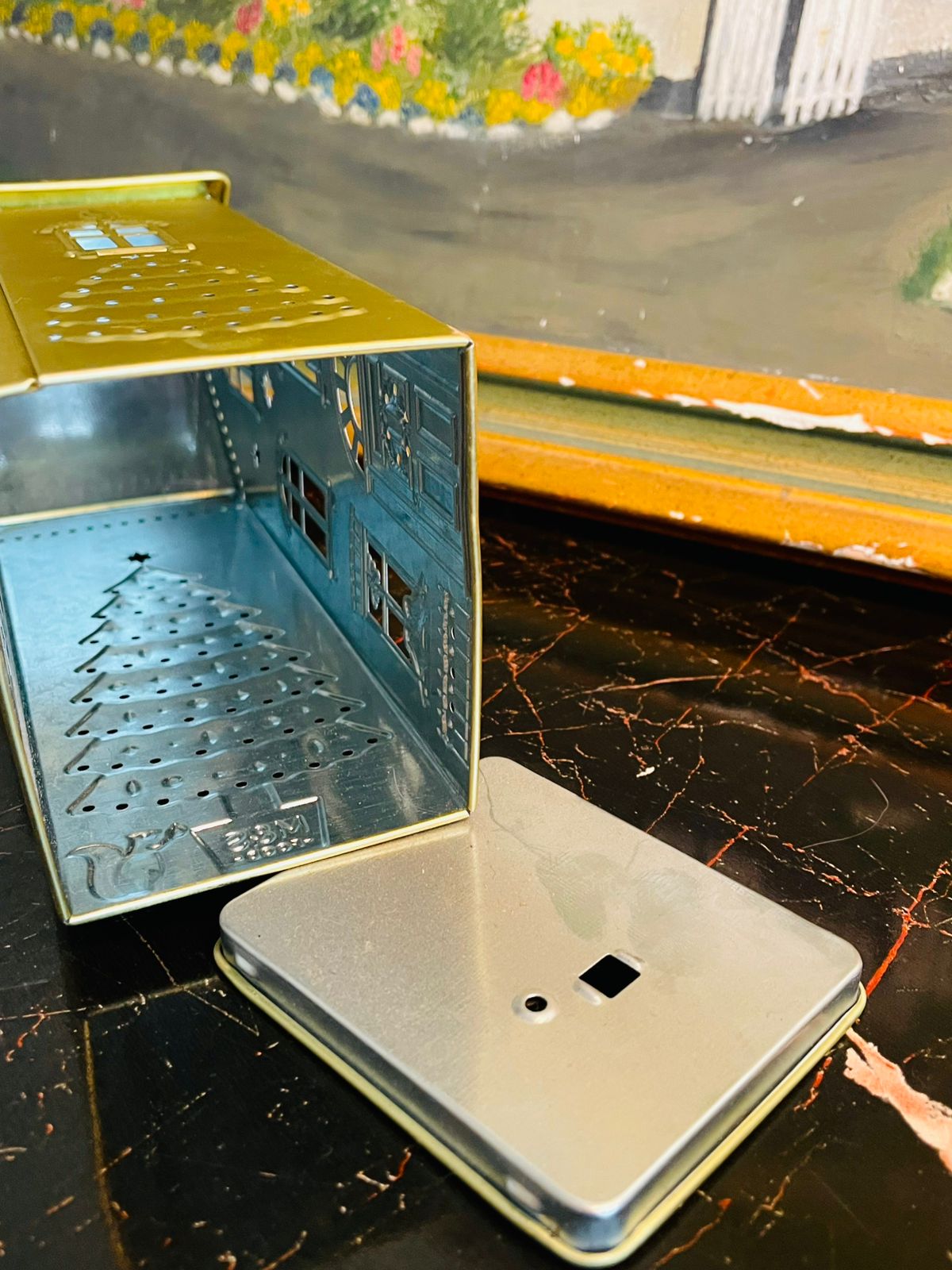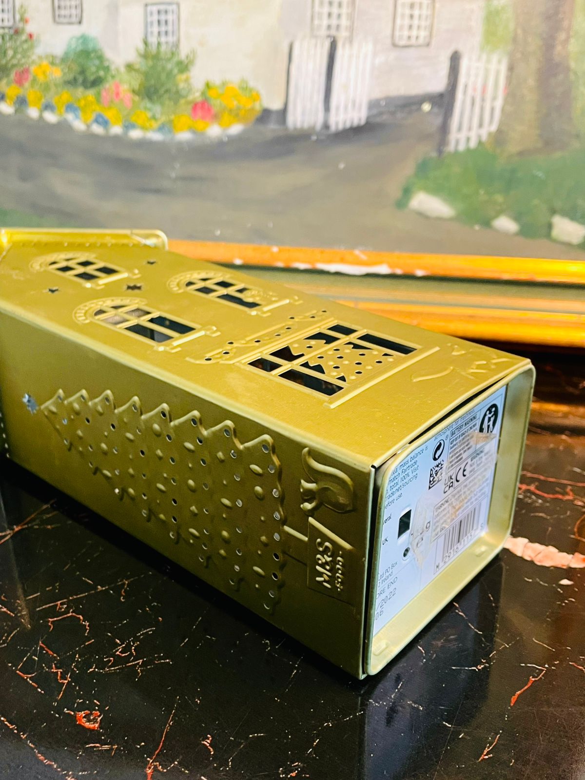 Add a warm seasonal glow to your home with this gold metal Christmas house lantern — featuring adorable window designs, festive tree detailing, and star cut-outs that shine beautifully when lit. Place an LED candle or fairy lights inside to create a magical holiday ambience.