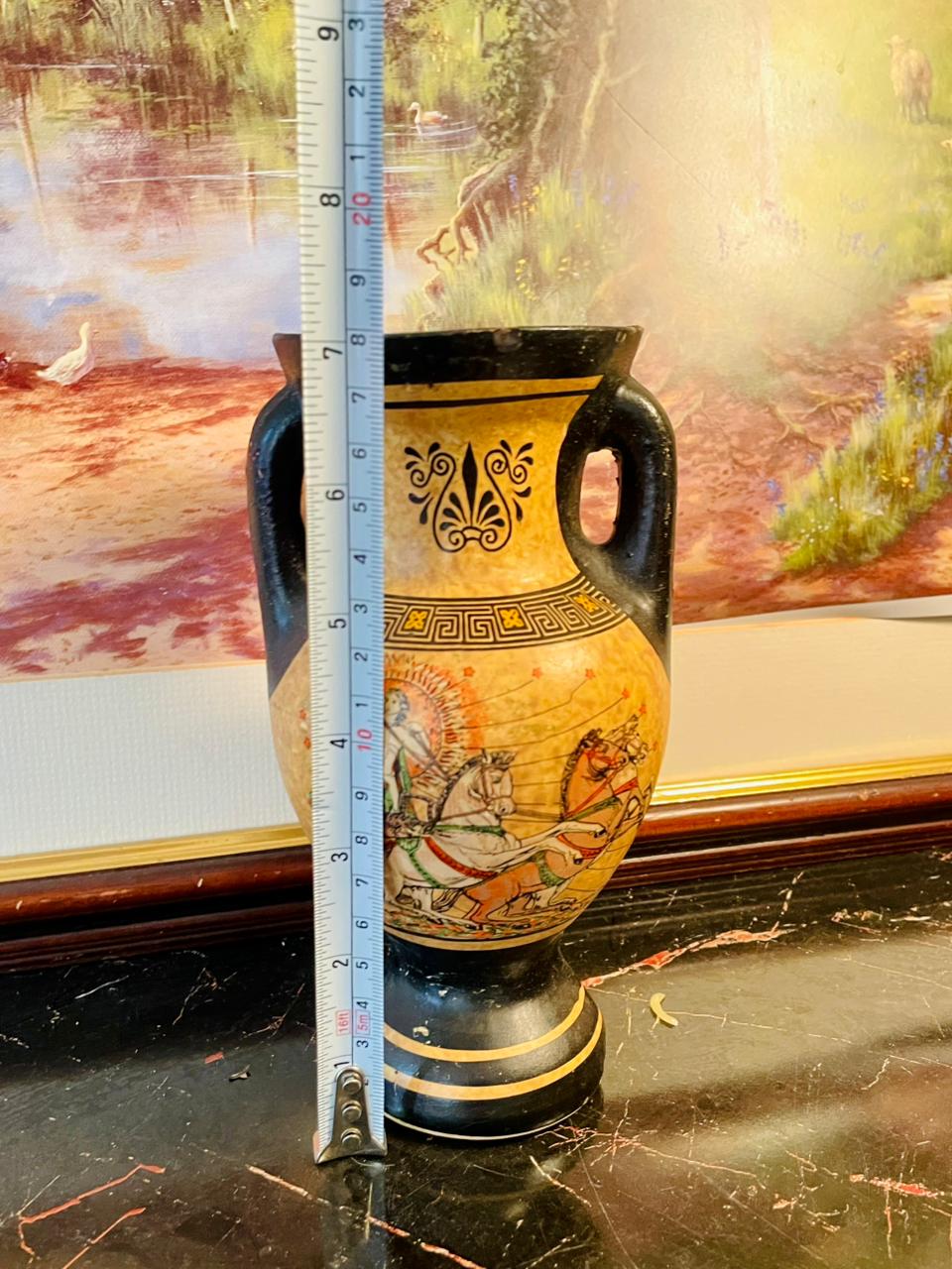 Set Includes: 1 large decorative plate, 2 amphora-style vases, 1 lidded trinket box