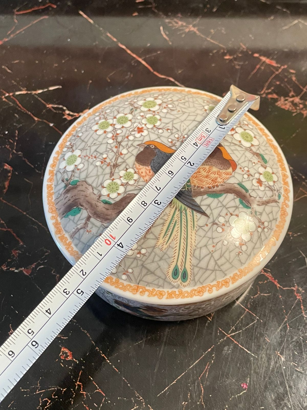 Hand-painted Oriental Porcelain Trinket Box – Bird & Floral Motif