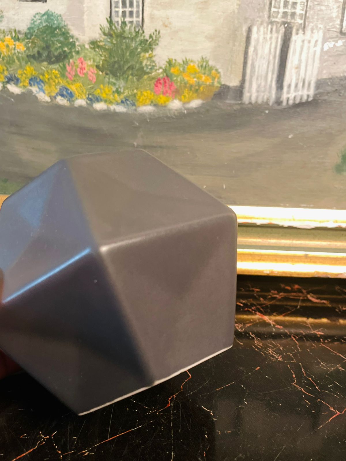 Design: Contemporary geometric shape with faceted sides and a matte black finish — combining Scandinavian simplicity with modern elegance