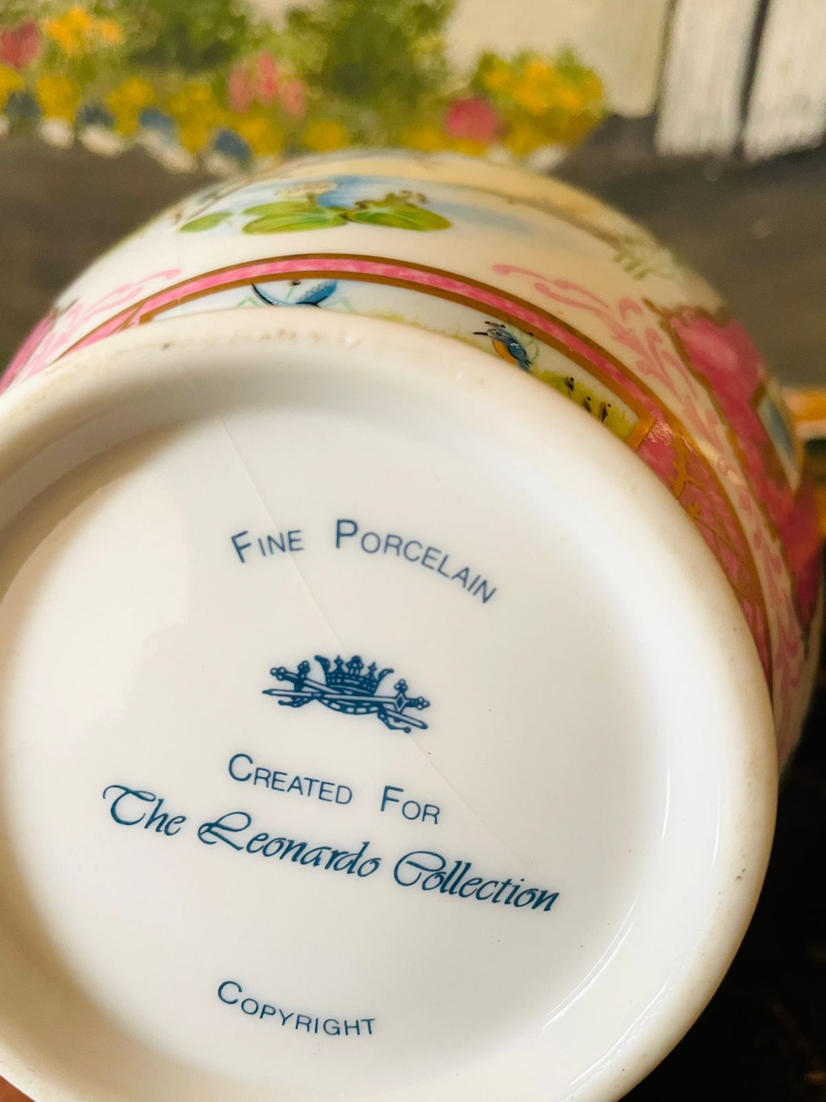 • Material: Fine porcelain with hand-painted detailing and gilt trim