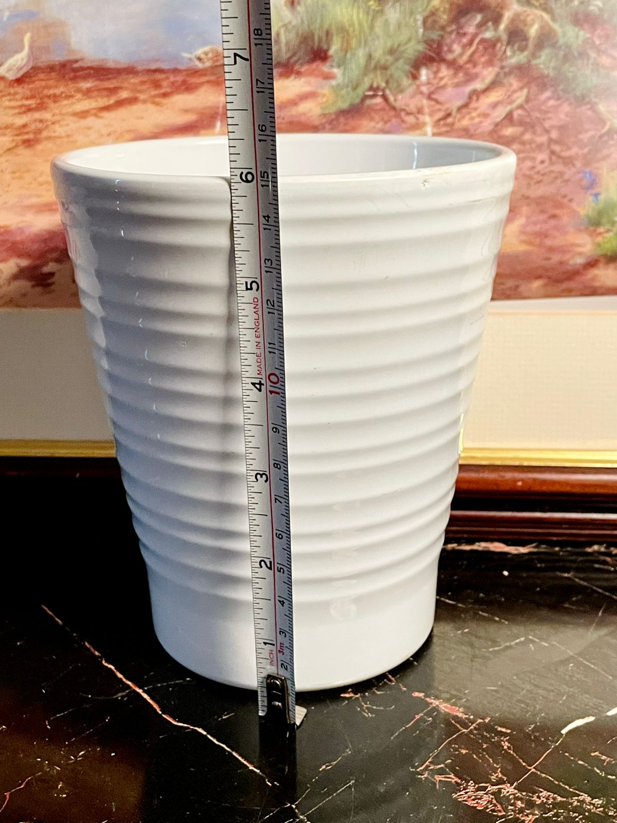 Large White Ribbed Ceramic Planter – Minimal Modern Indoor Flower Pot