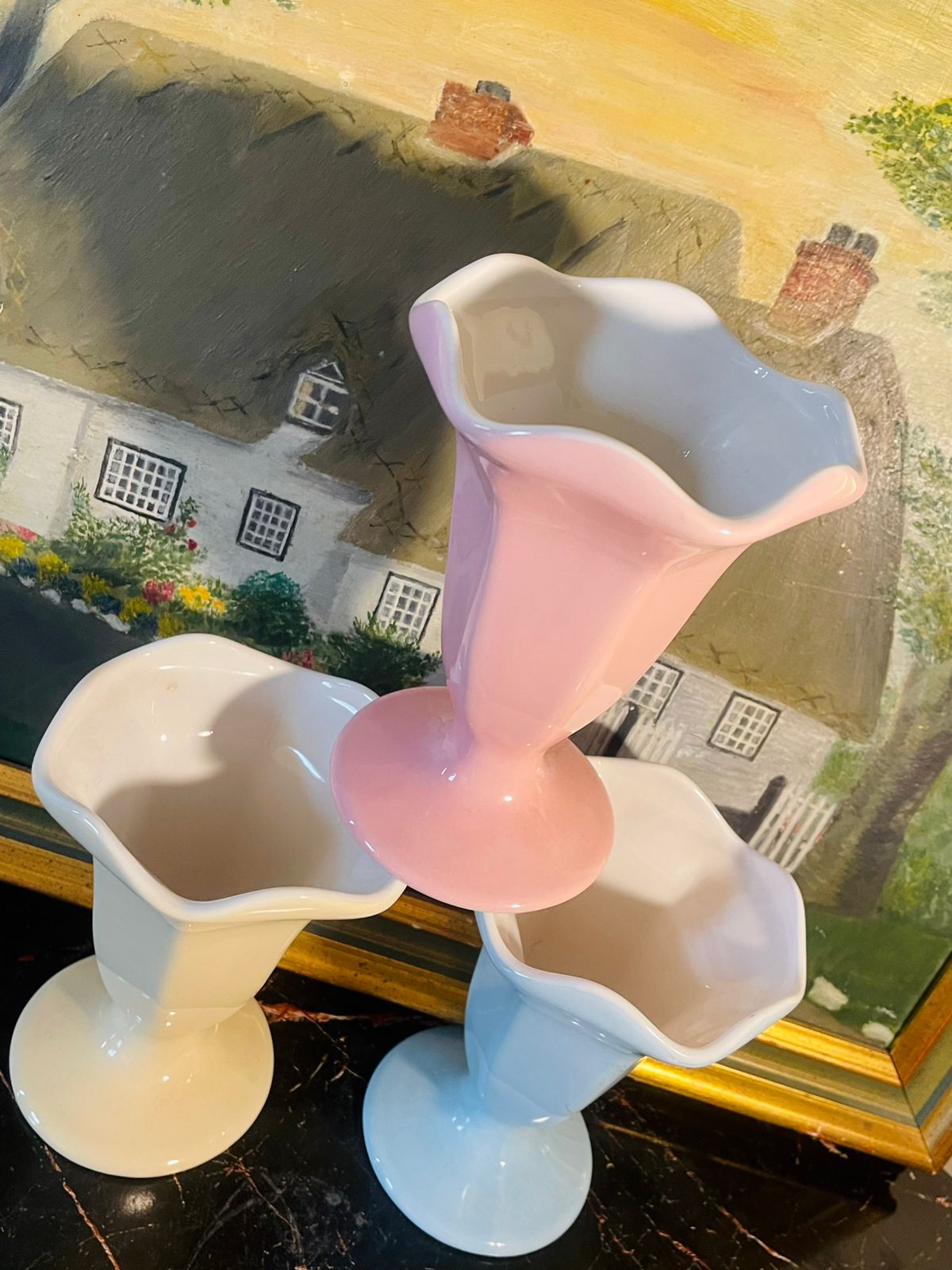 Bring playful pastel charm to your desserts with this Set of 3 Flared Ice Cream Glass Ceramic Cups in blue, yellow, and pink. Perfect for serving sundaes, puddings, or adding a pop of color to your kitchen shelf! 🎀