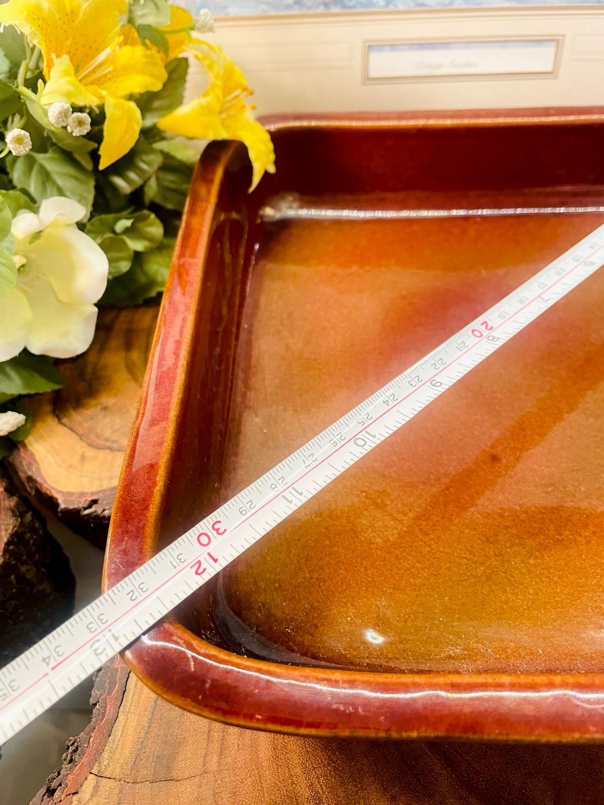 - Design: Deep square shape with smooth edges and rich brown finish
