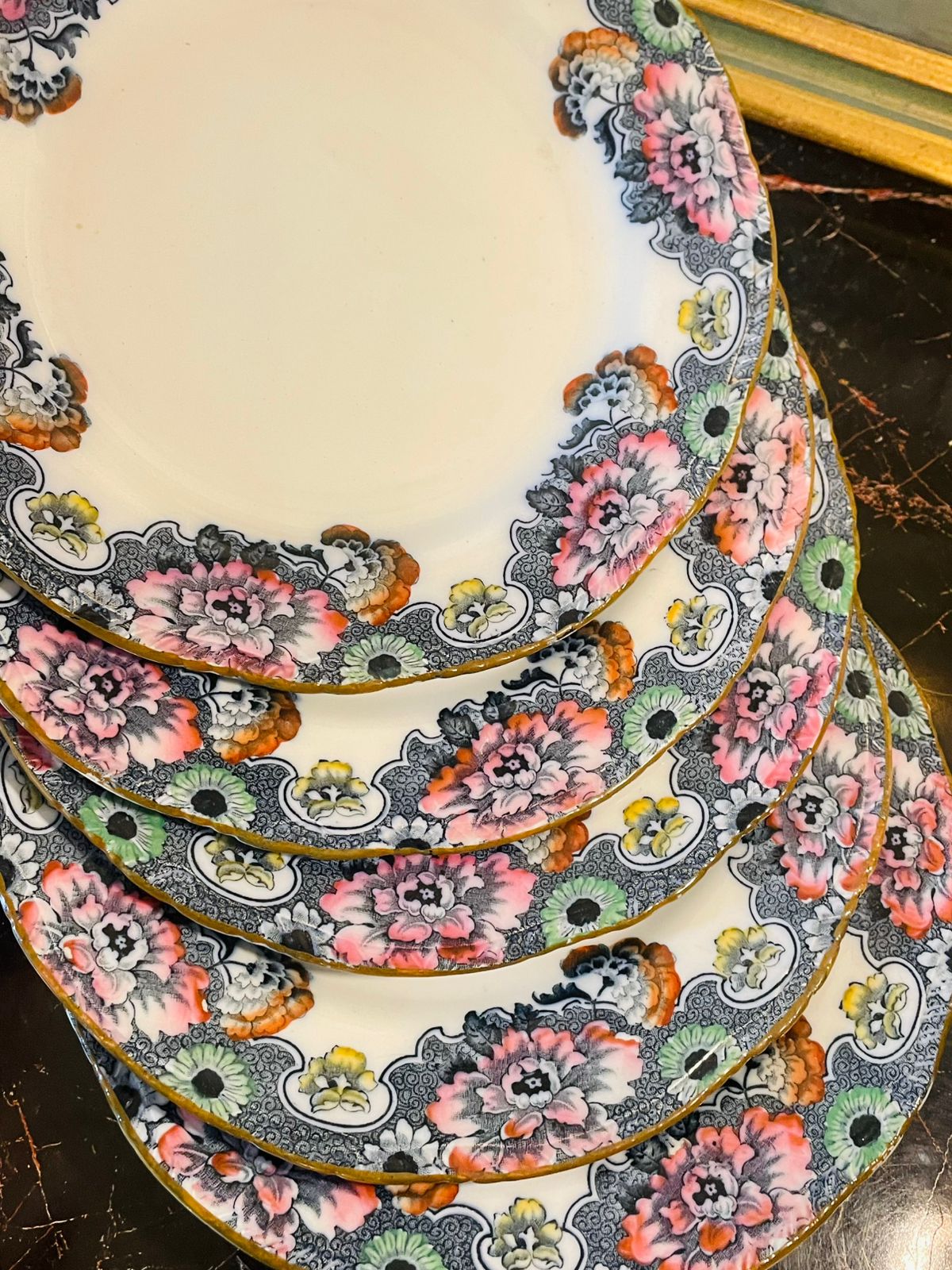 Experience the charm of classic English dining with this Set of 6 Vintage Cambridge Royal Semi-Porcelain Dinner Plates by Wood & Son, England — a beautiful blend of strength and sophistication.