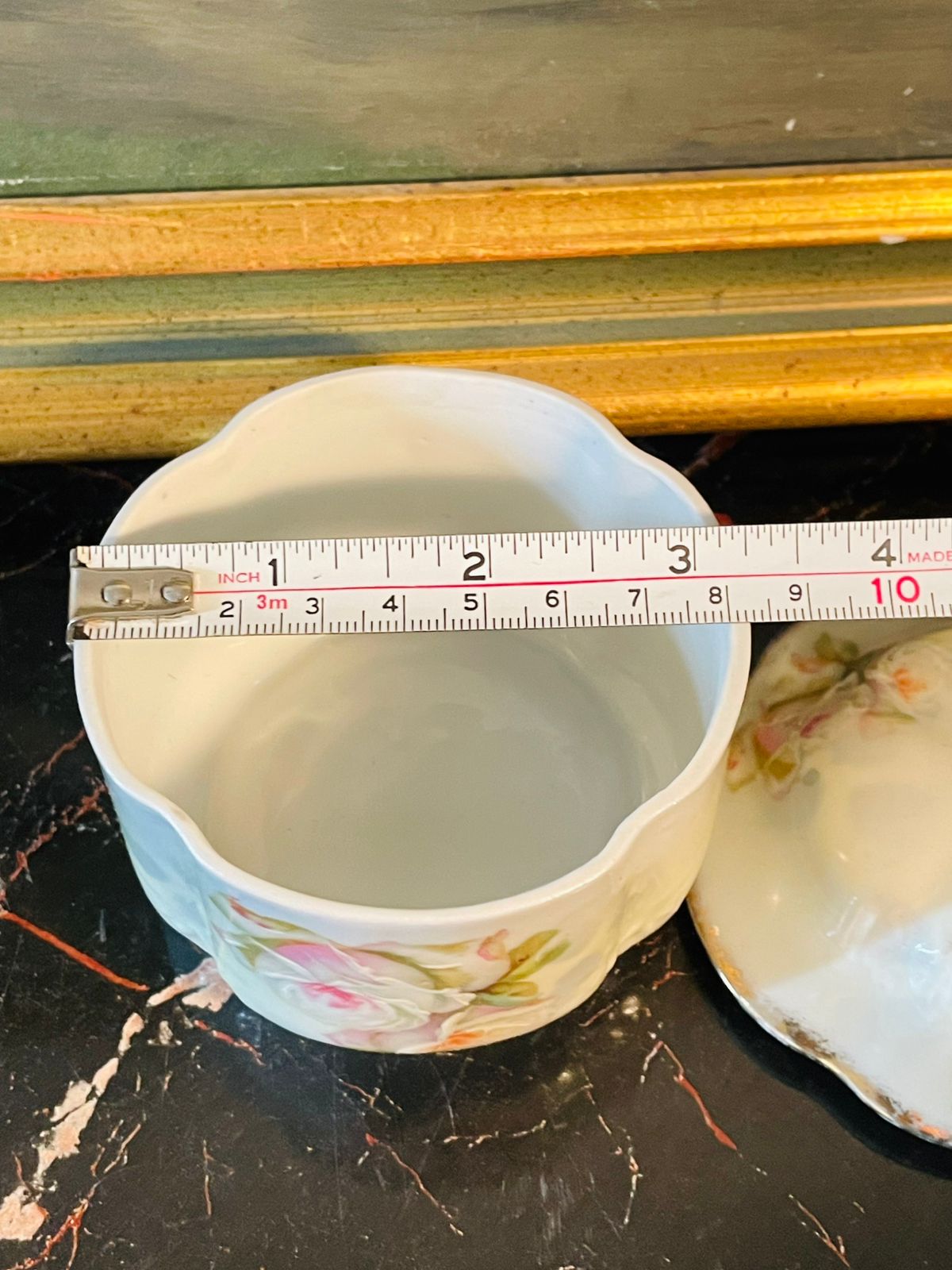 Trim: Light gold-gilt edging on lid and rim showing gentle vintage patina