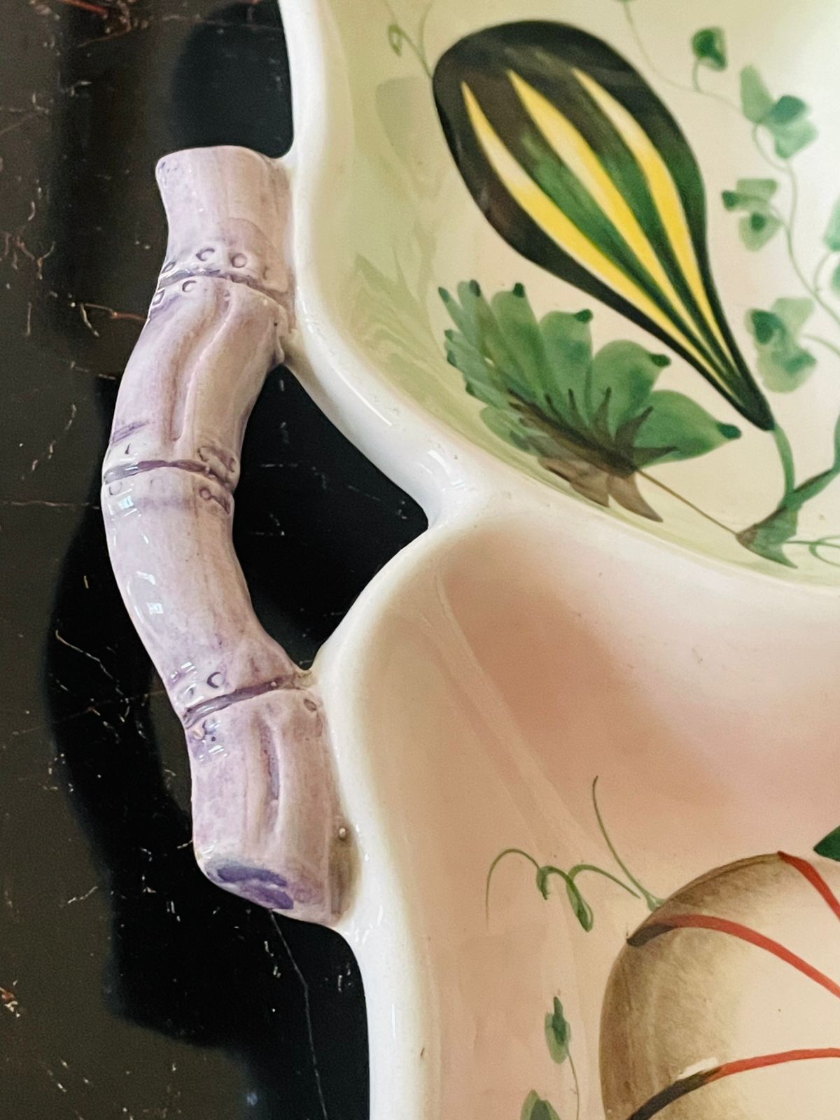 Design: Traditional Italian floral and fruit pattern, hand-painted in vibrant Mediterranean colors — blues, yellows, and greens