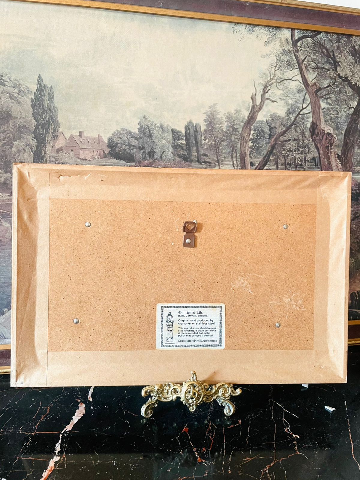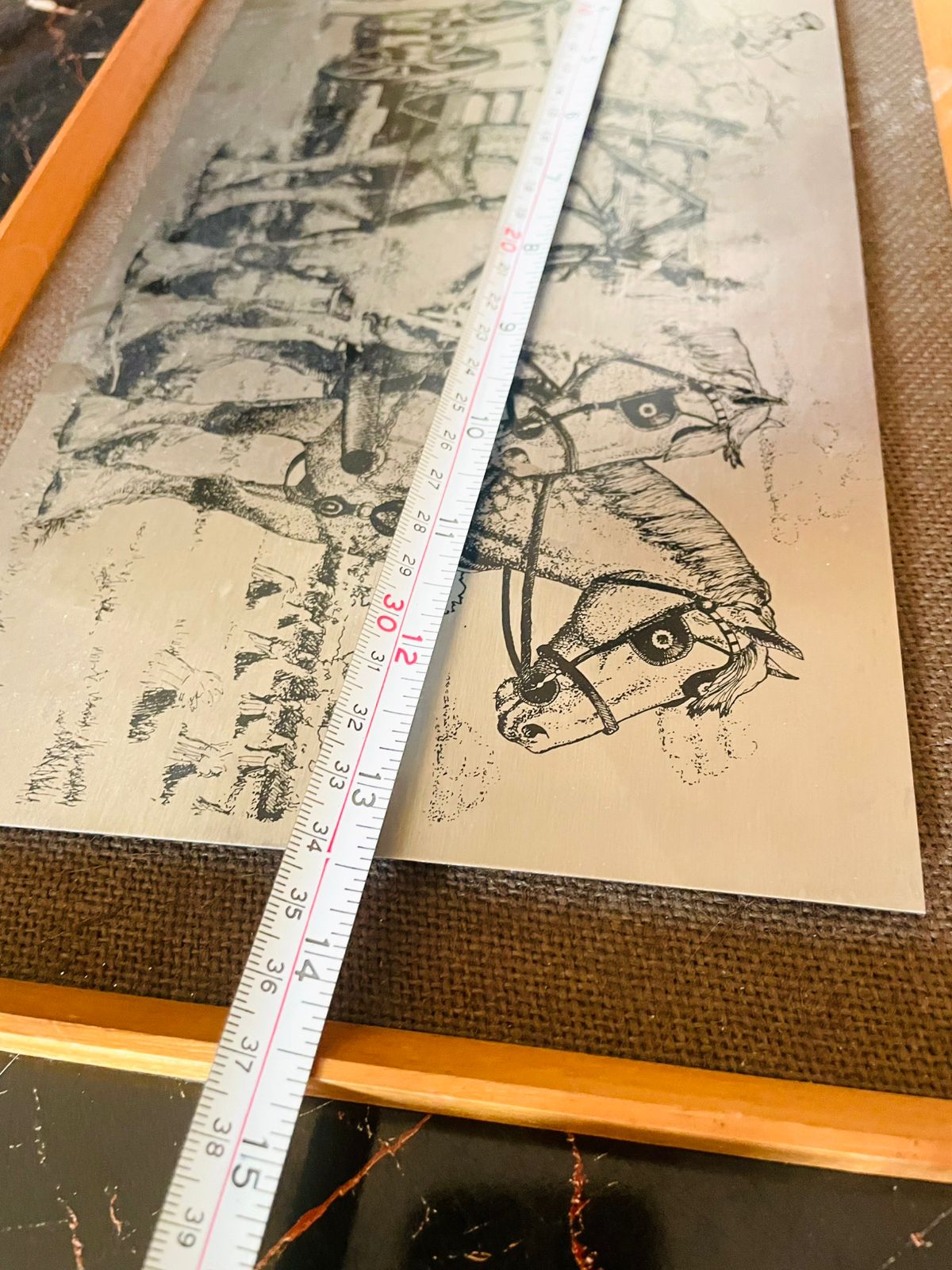 Vintage Horse & Cart Engraved Metal Art – Framed Farm Scene (England)