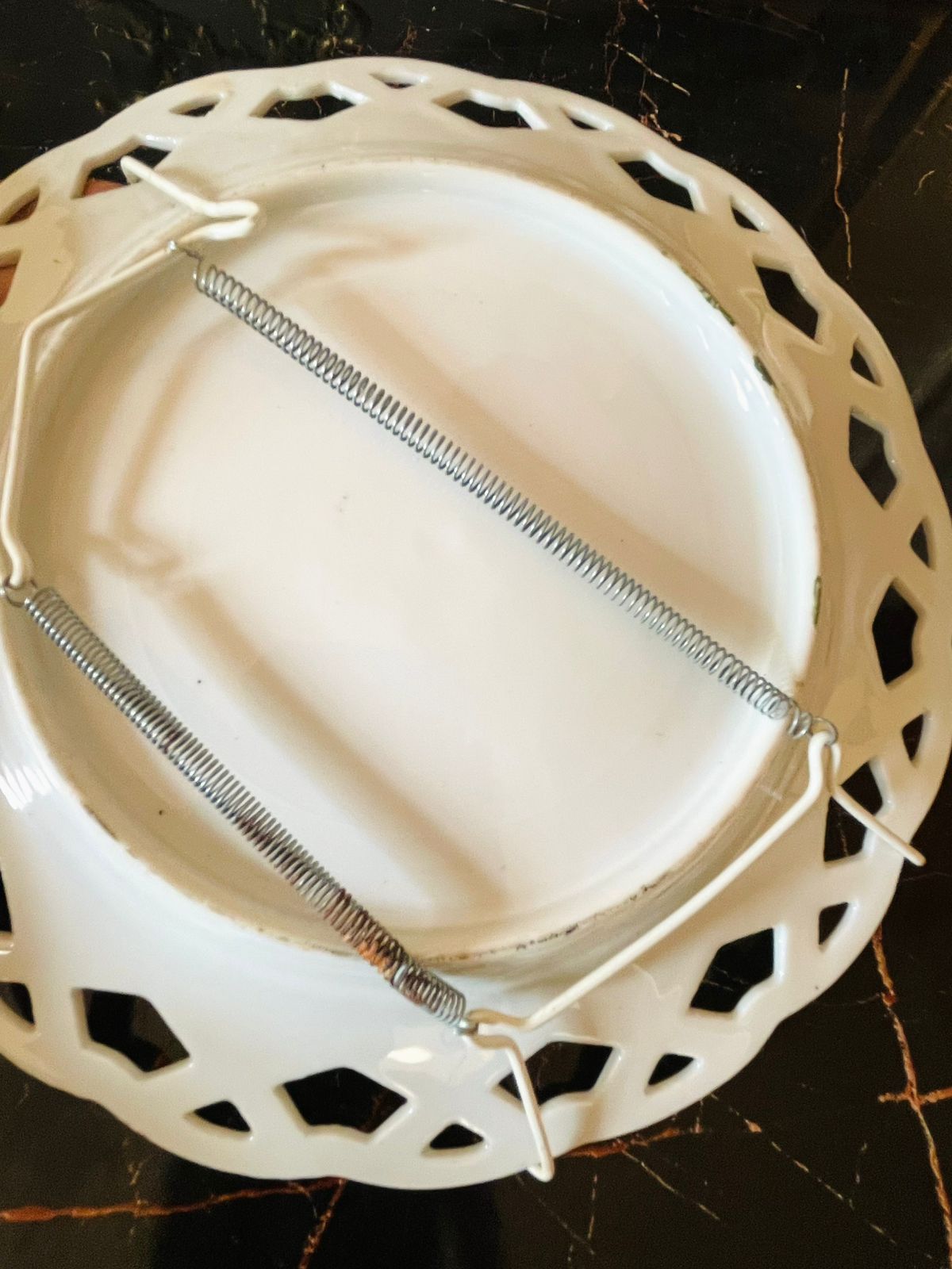 Material: Fine porcelain with reticulated (cutwork) lace rim