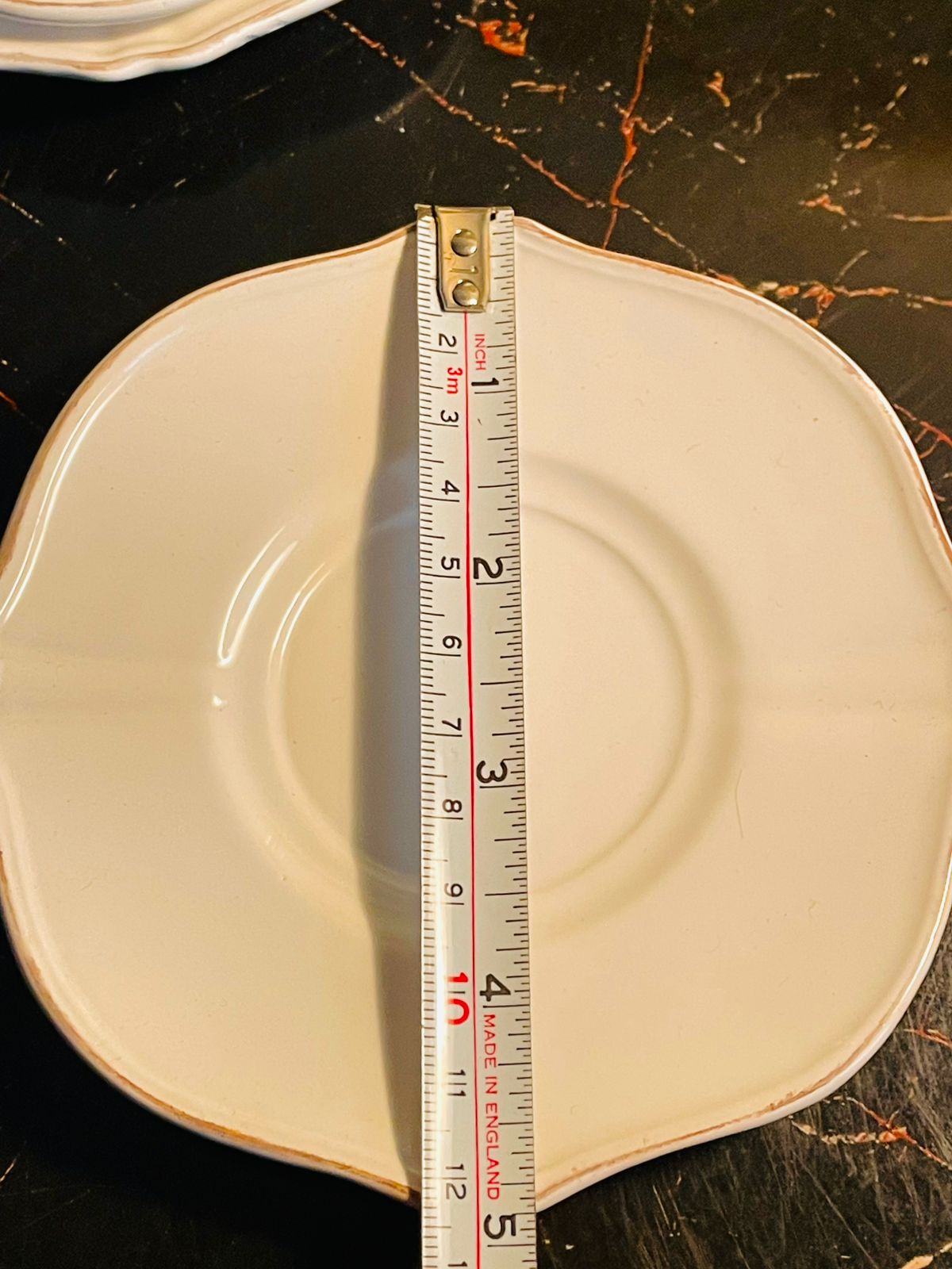 • Design: White glossy finish with scalloped edges & classic teacup handles